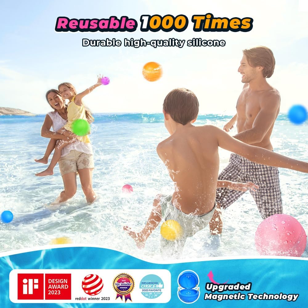 6Pcs Reusable Water Balloons, Pool Toys for Boys and Girls, Beach Outdoor Activities Water Toys for Kids Ages 3-12, Summer Water Toys for Boys and Girls