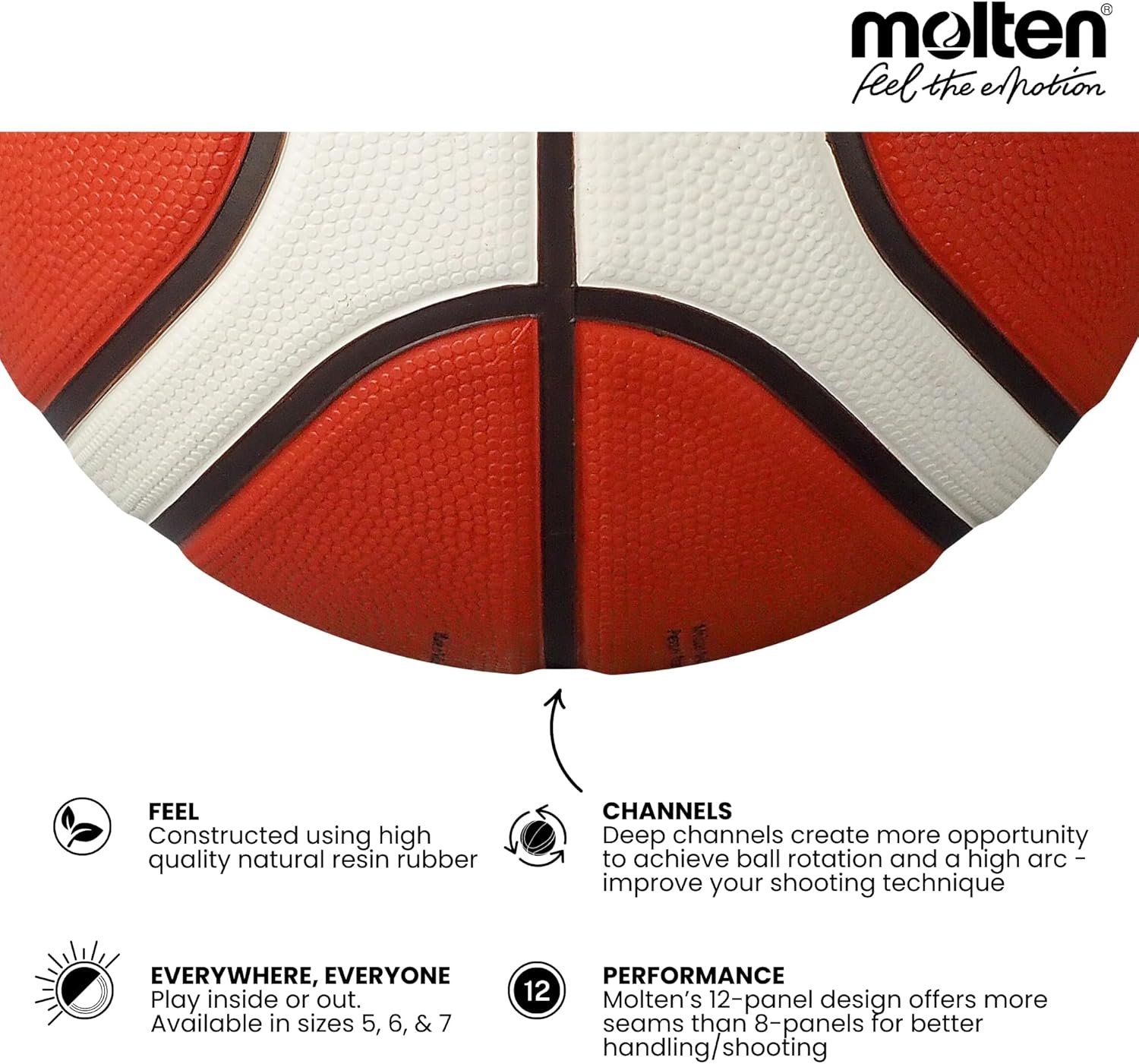 Molten BG2010 Deep Seams Premium Rubber Basketball, FIBA Approved, Indoor/Outdoor Play, Orange/Ivory